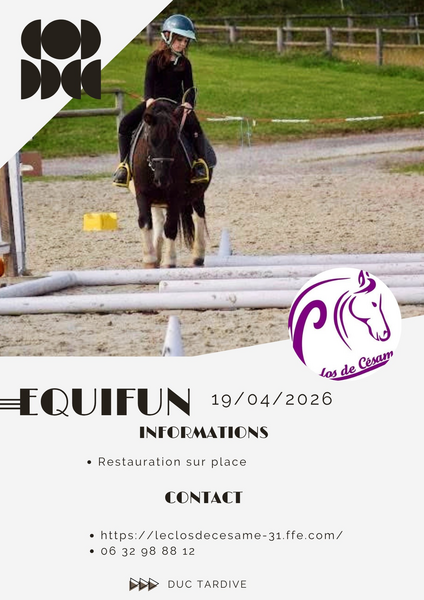 Le centre équestre vous donne rendez-vous pour un Equifun plein de bonne humeur le dimanche 19 avril 2026 !